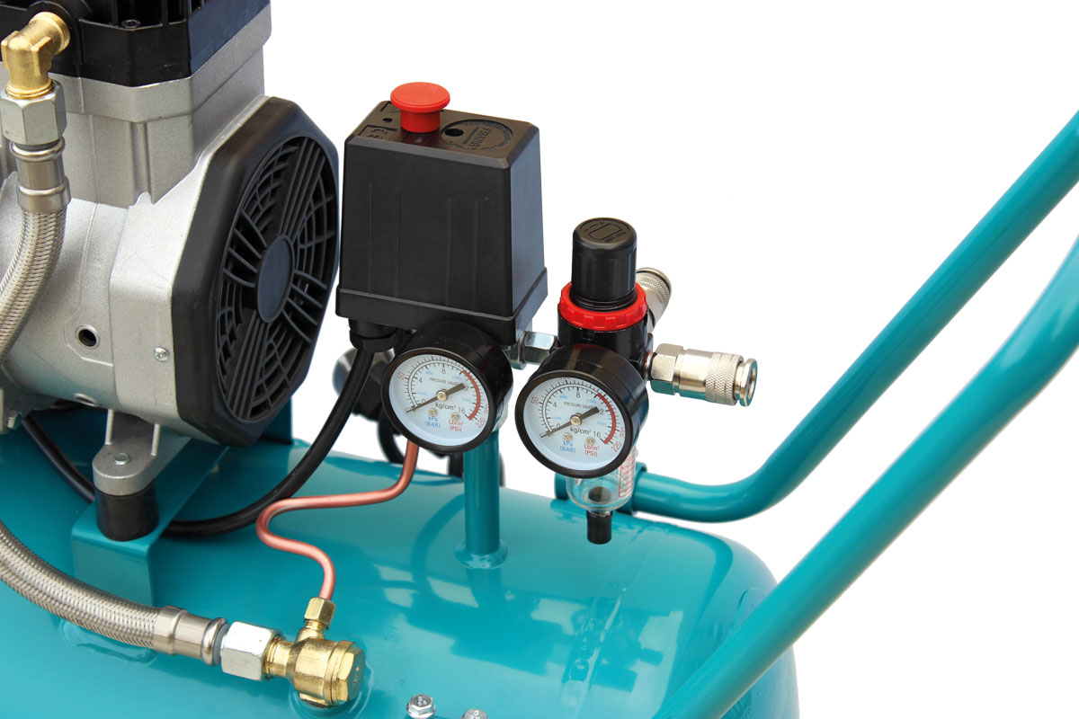 • Bezolejový pístový kompresor, nevyžaduje výměnu oleje, bez obsahu oleje v kondenzátu