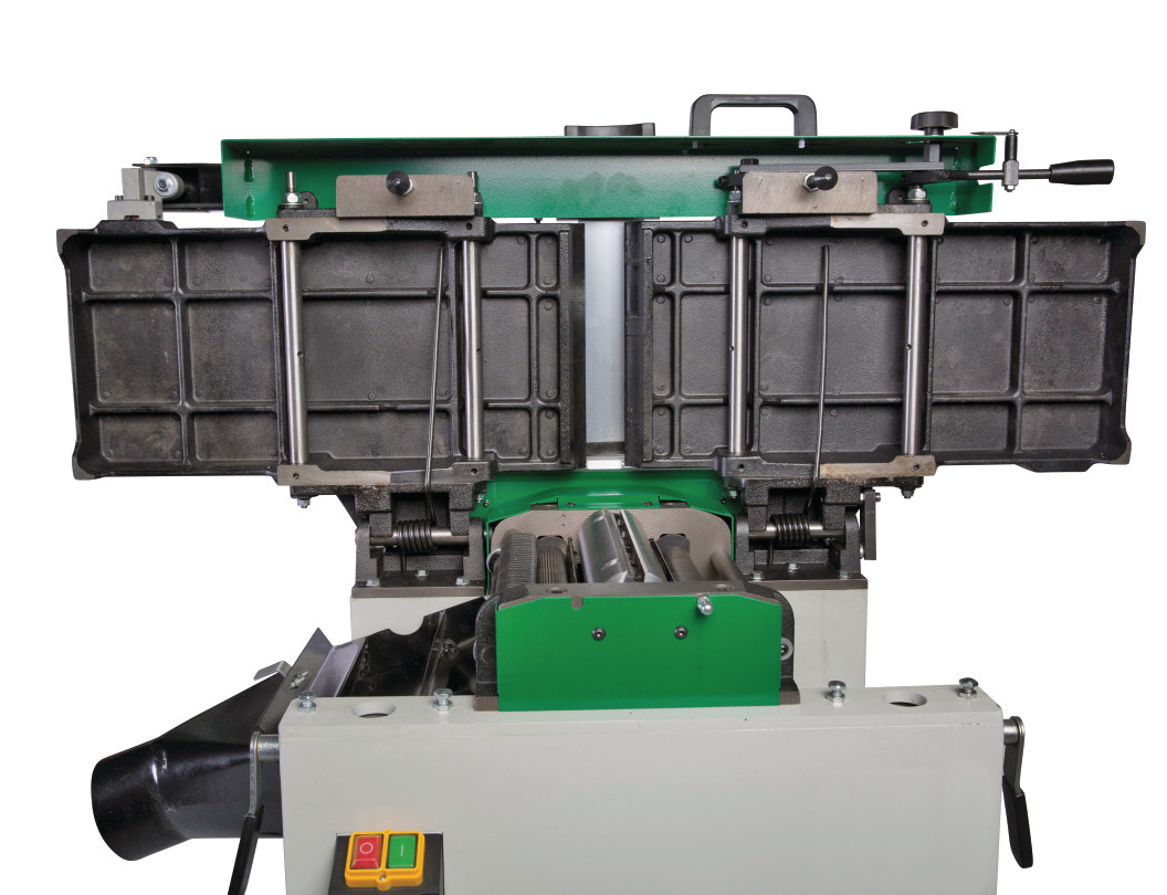 • Podávací válec s přímým ozubením a výstupní přítlačný válec s pogumovaným povrchem pro rovnoměrný posuv bez poškození obrobku