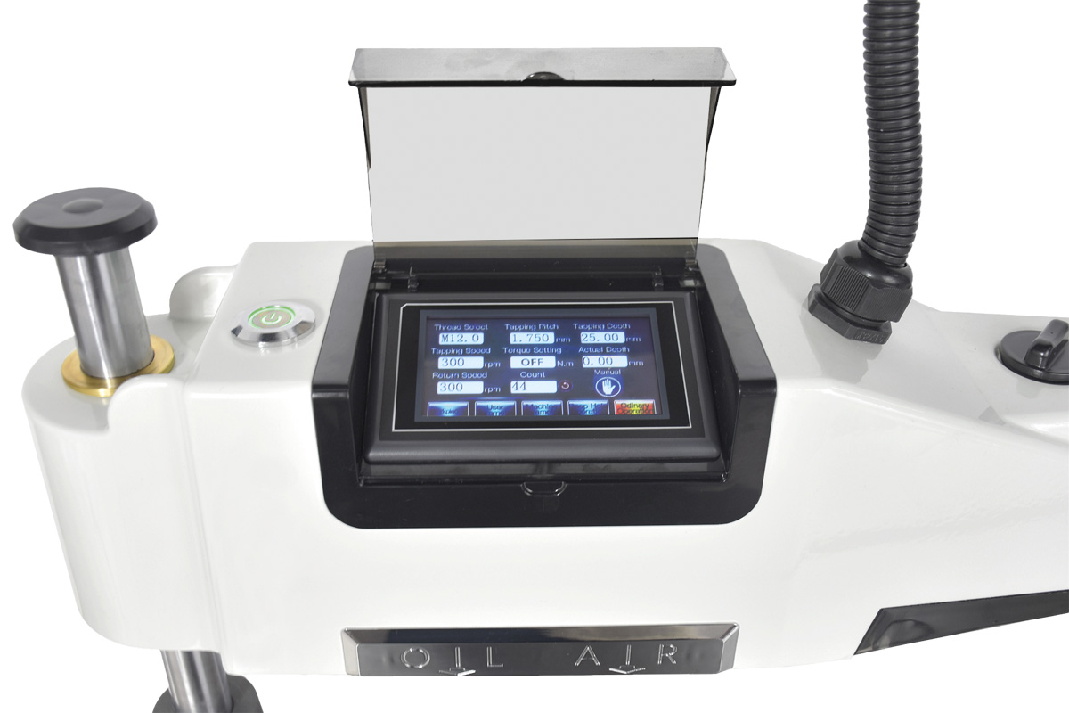 • Nastavení velikosti závitu, otáček, stoupání, hloubky řezu pomocí dotykového displeje